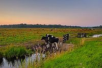 Koeien aan de slootkant en op de achtergrond koeien in het natuurgebied. Locatie is de Hilversumse Bovenmeent, onderdeel van natuurgebied Naardermeer. Bewerkte foto in olieverfschilderij-stijl met levendige kleuren en diepte.