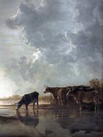 Een door mij bewerkt schilderij van enkele koeien die water drinken in uiterwaarden onder typische luchten die in de schilderkunst vaak aangeduid worden als 'Hollandse luchten'