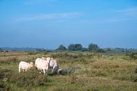 Koeien grazen in de duinen tijdens een zonnige zomerochtend in het natuurreservaat Duinen van Goeree in Zuid-Holland.
