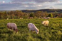Koeien in een weiland bij Fromberg tijdens zonsondergang.
