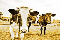 Nederlandse Zwartbont koeien in het weiland. Genieten van het verse gras. Vrede op aarde. Een Fries-Hollands rund. Typisch gezicht in Nederland.