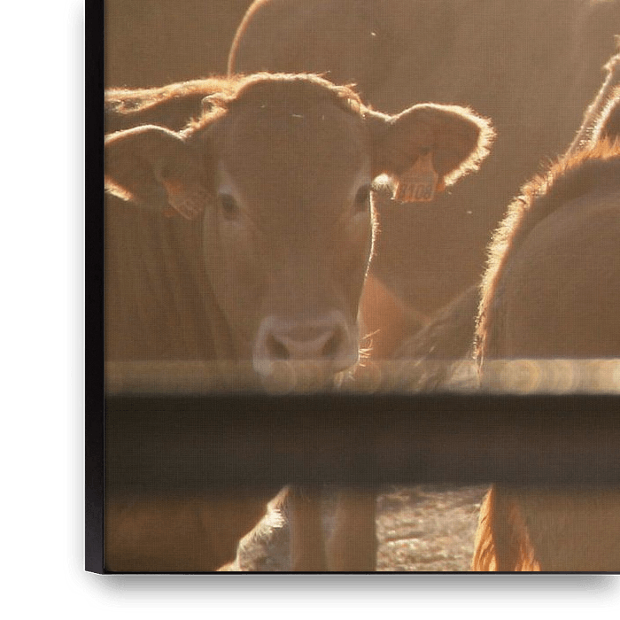 Ondergaande zon zorgt altijd voor bijzondere plaatjes, zoals hier in Andalusië (Spanje) op een boerderij als de kalveren naar binnen worden geleid.