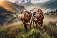Koop dit koeien kunstwerk Koeien in de bergen van Marjolein Deelen als print op canvas, aluminium dibond, (ingelijste) fotoprint, behang en ArtFrame. Voor jou op maat geprint in Fine-Art kwaliteit.