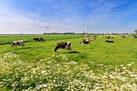 Holstein-Friesian koeien grazend in de groene wei in Nederland op een mooie lente dag