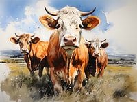 Kleurrijke en vrolijke koeien schilderen het landschap met hun levendige aanwezigheid. Hun bonte vachten en sprankelende ogen stralen speelsheid en geluk uit. Als ambassadeurs van vreugde zorgen ze voor een vrolijke en kleurrijke ambiance, waarbij ze glimlachen en lachjes uitlokken waar ze ook gaan.