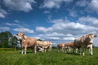 Nieuwsgierige koeien in het Reestdal bij rivier de Reest in Meppel Drenthe.