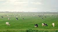 Een typisch Nederlands landschap. Een vlakke weide met vergezicht en vol met zwart-witte koeien en een dorp in de verte tegen een helder blauwe lucht met grote witte wolken die voorbij drijven. In zo'n land wil je toch wonen?
