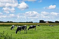 Op een heerlijke zomerse dag in Pingjum (Friesland) grazen deze tevreden koeien in het weiland.