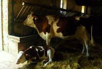 Koe met kalf in een Franse museumboerderij