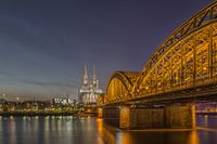 Deze foto is gemaakt in de Duitse stad Keulen op een avond in november 2014. Op de foto zijn de Dom en de Hohenzollernbrücke te zien.