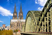 Kölner Dom und Hohenzollernbrücke bei strahlendem Sonnenschein