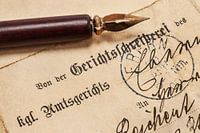 Altes Schreiben aus der Gerichtsschreiberei eines königlichen Amtsgerichts aus dem Jahr 1900, daneben liegt ein Federhalter.