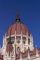 Koepel van het parlementsgebouw in Budapest Hongarije. Országház ligt aan de Donau. Het is één van de fraaiste monumenten ter wereld. Ontworpen door Imre Steindl, gereed in 1904 en gebouwd in neogotische stijl.