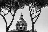 Nabij het Colosseum tussen het Roman Forum en Forum van Ceasar staat de Santi Luca e Martina kerk. De twee bomen framen de koepel waardoor een mooi, rustig en evenwichtig beeld ontstaat.