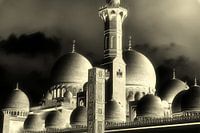 Architectuur en koepels van de Sheikh Zahid Moskee in Abu Dhabi in zwart-wit en sepia