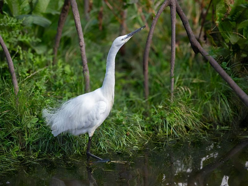 De koereiger lijkt veel op de kleine zilverreiger, maar is net iets kleiner.