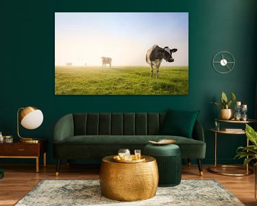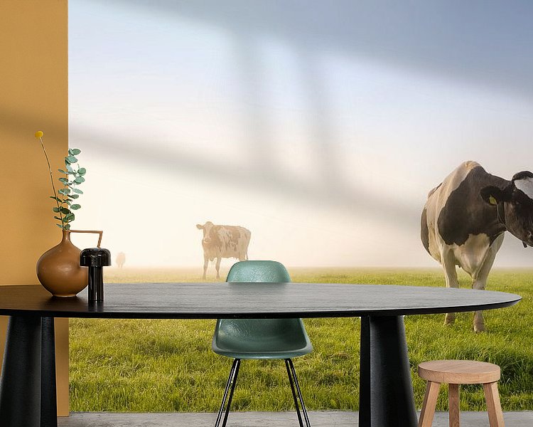 Een mistige ochtend in Flevoland, maar de koeien staan al in de wei.