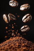 Dit fascinerende kunstwerk toont vliegende koffiebonen boven een stapel versgemalen koffie in indrukwekkend detail. De dynamische afbeelding van de bonen in beweging legt perfect het moment van koffiecreatie vast en brengt de energie en versheid van koffie bij je thuis. Deze afbeelding is ideaal voor in de keuken, het café of op kantoor en brengt de passie en het vakmanschap over dat in elk kopje koffie zit.