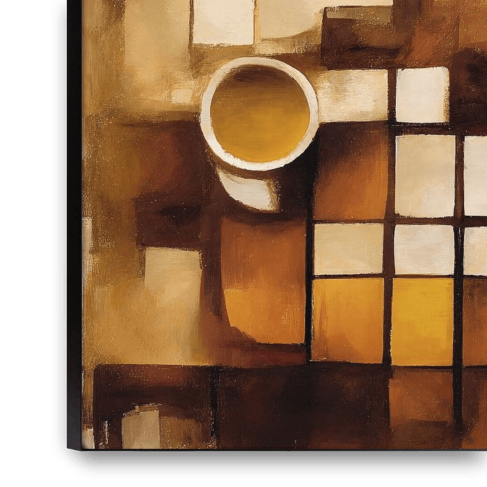 Abstract paneel schilderij in warme aardetinten met het thema koffie.