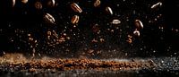 Over ‘Koffiebonen in de lucht - dynamisch en aromatisch’ van Poster Art Shop