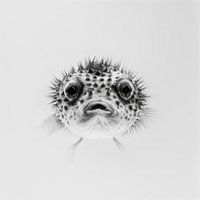 Dit zwart-wit portret van een kogelvis legt de verbazingwekkende textuur en opvallende details van dit ongewone zeedier vast. Dit kunstwerk is perfect voor liefhebbers van onderwaterfotografie en decoratieve kunst en voegt een vleugje exotisme en elegantie toe aan je kamer. De minimalistische afbeelding benadrukt de natuurlijke schoonheid en het unieke karakter van de kogelvis.