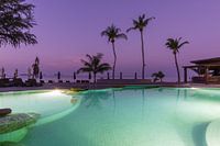 In de zachte stilte voordat de dag ontwaakt, ligt het zwembad te baden in turquoise licht, een stralend juweel in de tropische duisternis. Het wateroppervlak is zo glad als zijde, weerspiegelt de zachte glans van de onderwaterverlichting en draagt een zweem van de naderende ochtend. Er hangt een vleugje zout en vochtige aarde in de…