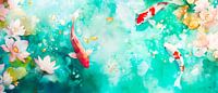 Koi en waterlelies in een kleurenspel van Poster Art Shop