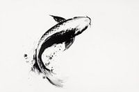 Een majestueuze koi zwemt door de lucht met sierlijke lijnen, zijn elegante silhouet creëert een gevoel van rust en vrijheid. De dynamische spatten eromheen geven het kunstwerk levendigheid en beweging. Perfect voor de woonkamer, waar het gesprekken stimuleert en een harmonieuze sfeer creëert.