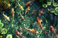 Digitaal kleurrijk beeld van Koi karpers in een japanse vijver met helder water