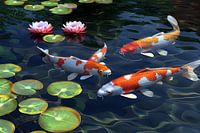 Koop dit digital art kunstwerk Koi karpers vissen in een vijver van Egon Zitter als reproductie op canvas, aluminium dibond, (ingelijste) fotoprint, behang en ArtFrame, op maat geprint in Fine-Art kwaliteit.