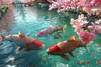 Digitaal kleurrijk beeld van Koi karpers in een japanse vijver met helder water