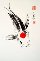 Een elegante koi met een felrood accent springt in het oog en straalt rust en harmonie uit. De vloeiende lijnen en het contrast tussen zwart en wit creëren een meditatieve sfeer. Perfect voor de woonkamer of kantoor om een ontspannen en stijlvolle omgeving te bevorderen.