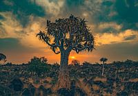 Kokerboom bij zonsondergang in Namibië, Afrika