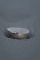 Deze mooi grijze kokkel schelp is op het Zuid-Hollandse strand van Goeree Overflakkee gefotografeerd met mij favoriete 105 mm macro lens het zand heeft hier een grijze kleur waarschijnlijk om dat dit aan de monding van de Maas ligt.