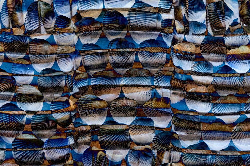Lijnenspel van kokkels en scheermessen samengevoegd m.b.v. double exposure zodat er een abstract beeld ontstaat.