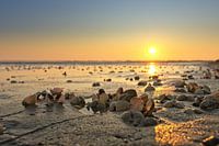 Onder bepaald weersomstandigheden, meestal langdurig warm weer, kan het voor komen dat er erg veel kokkels streven en dat de schelpen massaal aanspoelen. Triest voor de natuur maar mooi voor de foto!