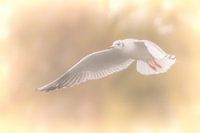 Volwassen Kokmeeuw in winterkleed, In de zomer zijn kop en keel zijn donker chocoladebruin, vandaar soms ook de naam "kapmeeuw". De fotograag zag en registreerde deze mooie natuurbeleving.
