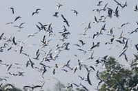Als ik daar aan het fotograferen ben is het altijd erg indrukwekkend als de kokmeeuwen opeens met honderden tegelijk opvliegen.