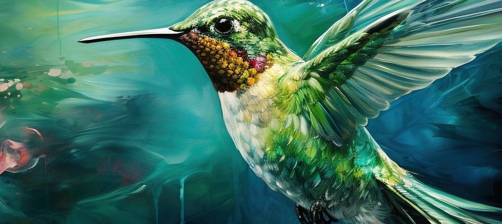 Details: kolibrie, bloem, vliegen, dynamisch, impressionisme, natuur, dier, energie, beweging, levenslust, Natuurlijk wonen