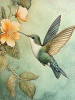 Het mooie kleurige vogeltje de Kolibrie. Klein maar fijn. Zachte groene en gele kleuren.