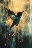Dit unieke kunstwerk toont een elegante kolibrie die in de lucht zweeft, omlijst door prachtige gouden accenten. Het ontwerp combineert donkere tinten met levendige goudaccenten, wat een gevoel van diepte en luxe toevoegt. De kolibrie, met zijn gedetailleerde vleugels, straalt een serene, bijna magische energie uit. Deze eyecatcher past perfect in moderne interieurs en brengt een vleugje natuur en verfijning in elke ruimte. Ideaal voor de slaapkamer of kantoor, waar het rust en inspiratie kan bieden. Dit ontwerp is een uitstekende keuze voor liefhebbers van abstracte kunst en natuurliefhebbers die hun ruimte willen verfraaien.