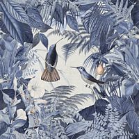 Tropisch junglelandschap met exotische kolibries en weelderige groene vegetatie