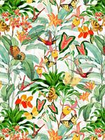 Koop dit bloemen kunstwerk Kolibries in de bloemenjungle van Floral Abstractions op canvas, aluminium dibond, (ingelijste) fotoprint, behang en ArtFrame, op maat geprint in Fine-Art kwaliteit.