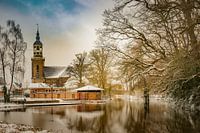 Het koekje in Almelo met op de achtergrond de Nederlandse Hervormde kerk. In de volksmond de Grote kerk. Deze in een romantische stijl bewerkt maar het moderne gebouw in het midden verraad dat het van recente tijd is. Ook als het kan een gewilde lokatie om de schaatsen onder te binden.