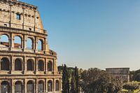 Das Kolosseum ist das größte im antiken Rom erbauten Amphitheater. Es wurde zwischen 72 und 80 n. Chr. erbaut, ist es heute das Wahrzeichen der Stadt Rom. Vor dem Kolosseum befindet sich der Konstantinsbogen, ein dreitoriger Triumphbogen, Rom, Latium, Italien, Europa