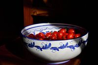 Koop de foto Kom met tomaten van Ulrike Leone als print op canvas, aluminium dibond, (ingelijste) fotoprint, behang en ArtFrame. Voor jou op maat geprint in Fine-Art kwaliteit.