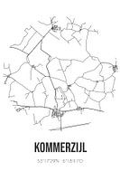 Zwart-witte landkaart, stratenplan of plattegrond van Kommerzijl. Kommerzijl is gelegen in de gemeente Westerkwartier, provincie Groningen. Op de stadskaart zijn alle openbare wegen in Kommerzijl opgenomen. Verder is de kaart voorzien van de coördinaten van het centrum van Kommerzijl.