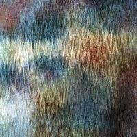Abstract digitaal schilderij met complexe texturen en meerdere kleuren, waardoor een dynamisch en betoverend landschap ontstaat.