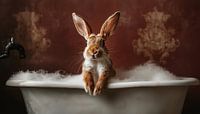 Voor liefhebbers van originele en eigenzinnige kunst is dit konijn in bad schilderij een echte must-have. Het is niet alleen een decoratief object, maar ook een vrolijke toevoeging die elke kamer een uniek karakter geeft. Een perfecte mix van humor, stijl en artistieke flair.
