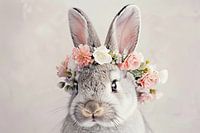 Deze schattige afbeelding toont een schattig konijn met een prachtige bloemenkrans. De zachte pastelkleuren en de gedetailleerde weergave van de bloemen geven de foto een betoverende uitstraling. Deze foto is perfect voor de kinderkamer en brengt een liefdevolle en vrolijke sfeer in de kamer. Het harmonieuze kleurenpalet en het charmante motief maken het een ideaal cadeau voor dierenliefhebbers en iedereen die op zoek is naar een bijzondere en stijlvolle decoratie. Een hoogtepunt in de wereld van elk kind dat vreugde en warmte uitstraalt.